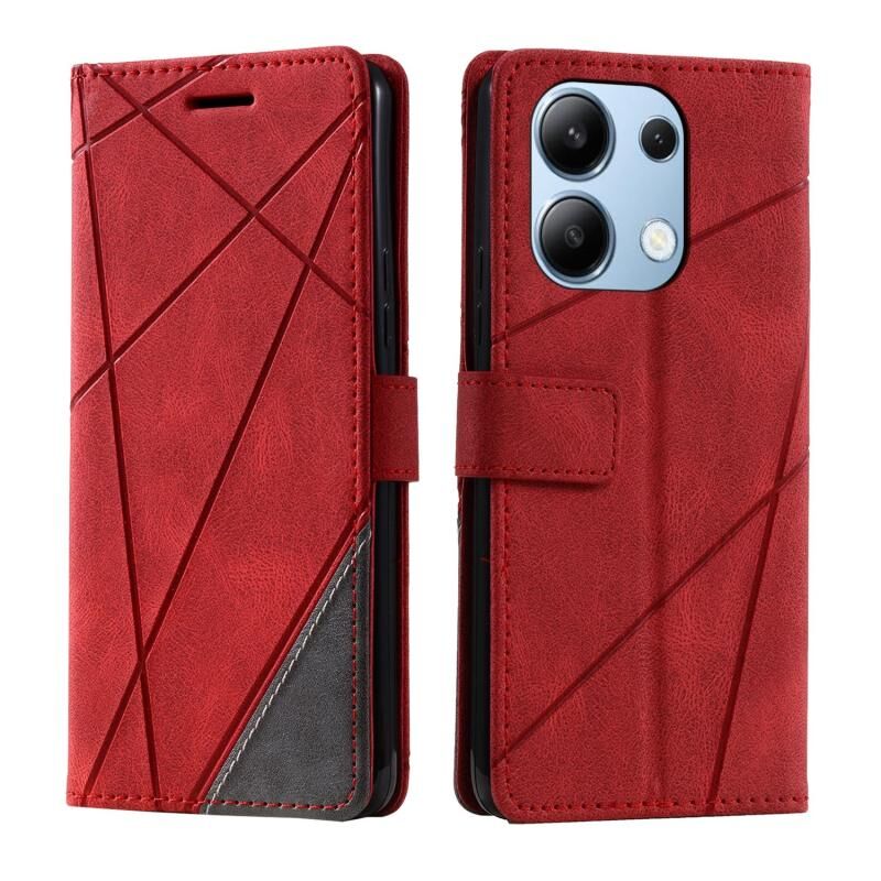 Για Xiaomi Redmi Note 13 4G δέρμα αίσθηση Splicing δερμάτινη θήκη τηλεφώνου (κόκκινο)