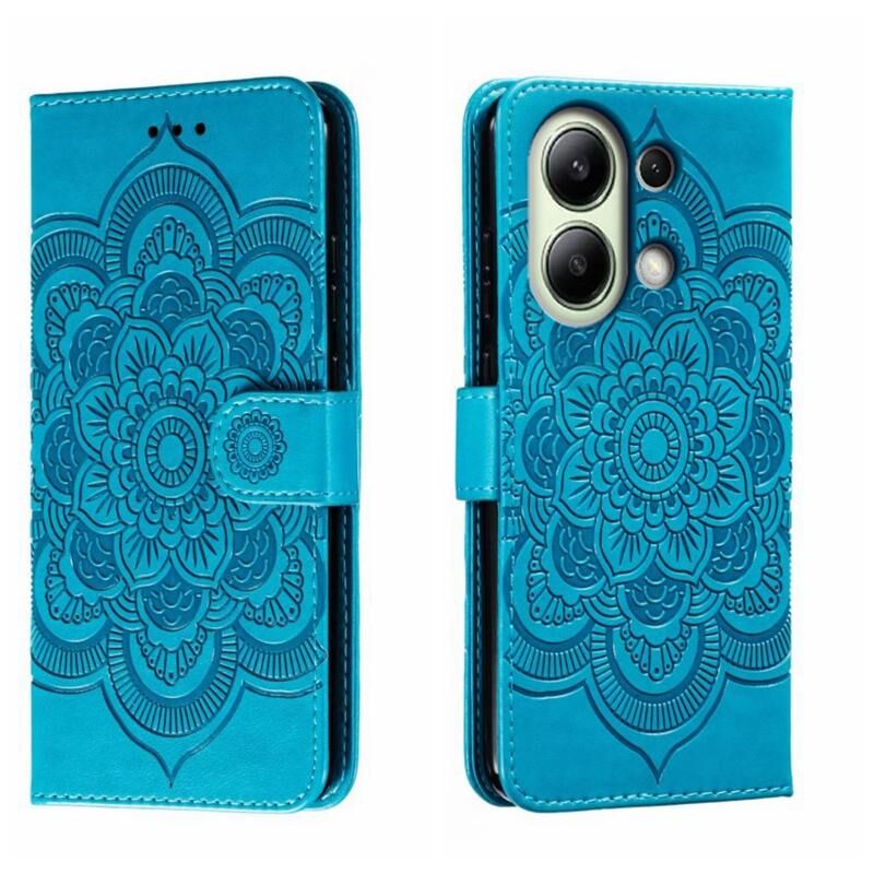 Για Xiaomi Redmi Σημείωση 13 4G Sun Mandala ανάγλυφο μοτίβο τηλέφωνο δερμάτινη θήκη (Μπλε)