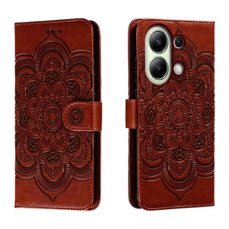 Για Xiaomi Redmi Σημείωση 13 4G Sun Mandala ανάγλυφο μοτίβο τηλέφωνο δερμάτινη θήκη (καφέ)