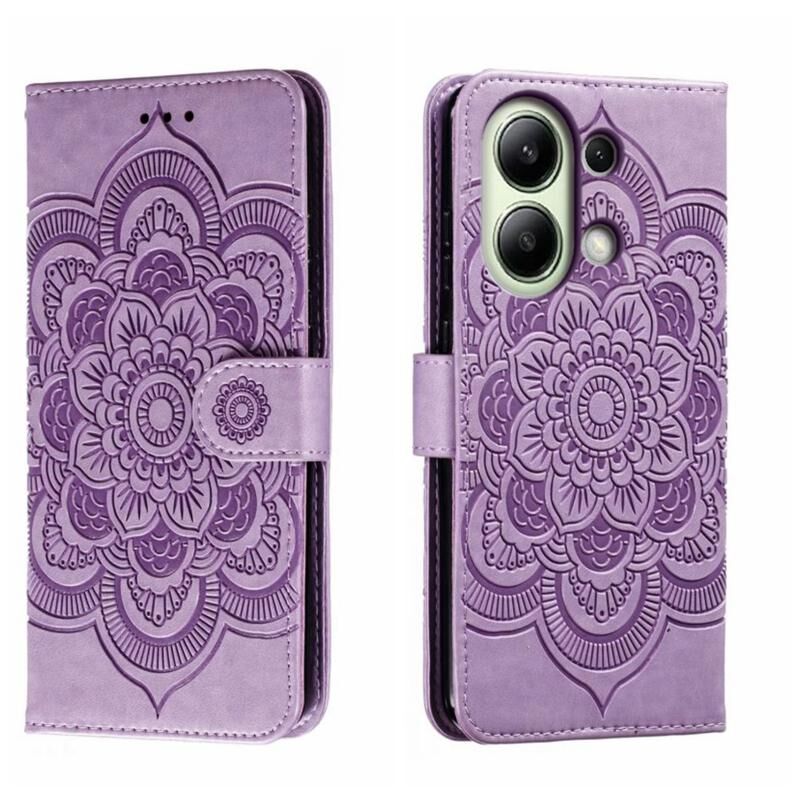 Για Xiaomi Redmi Σημείωση 13 4G Sun Mandala ανάγλυφο μοτίβο τηλέφωνο δερμάτινη θήκη (Μωβ)