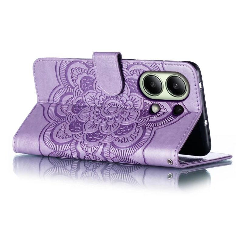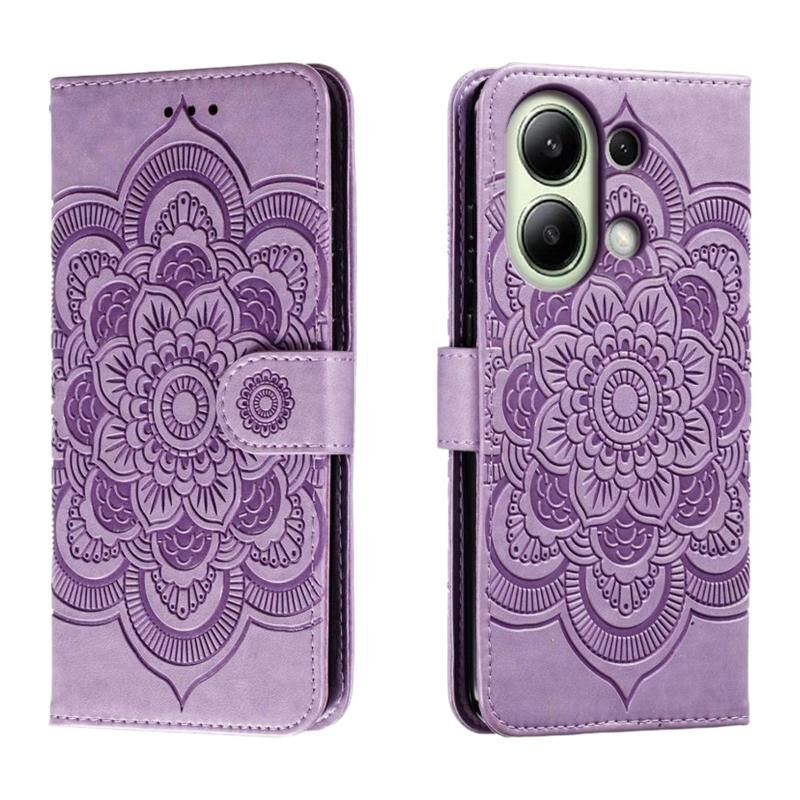 Για Xiaomi Redmi Σημείωση 13 4G Sun Mandala ανάγλυφο μοτίβο τηλέφωνο δερμάτινη θήκη (Μωβ)
