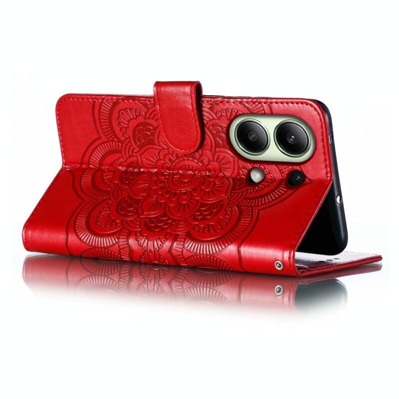 Για Xiaomi Redmi Σημείωση 13 4G Sun Mandala ανάγλυφο μοτίβο τηλέφωνο δερμάτινη θήκη (Κόκκινο)