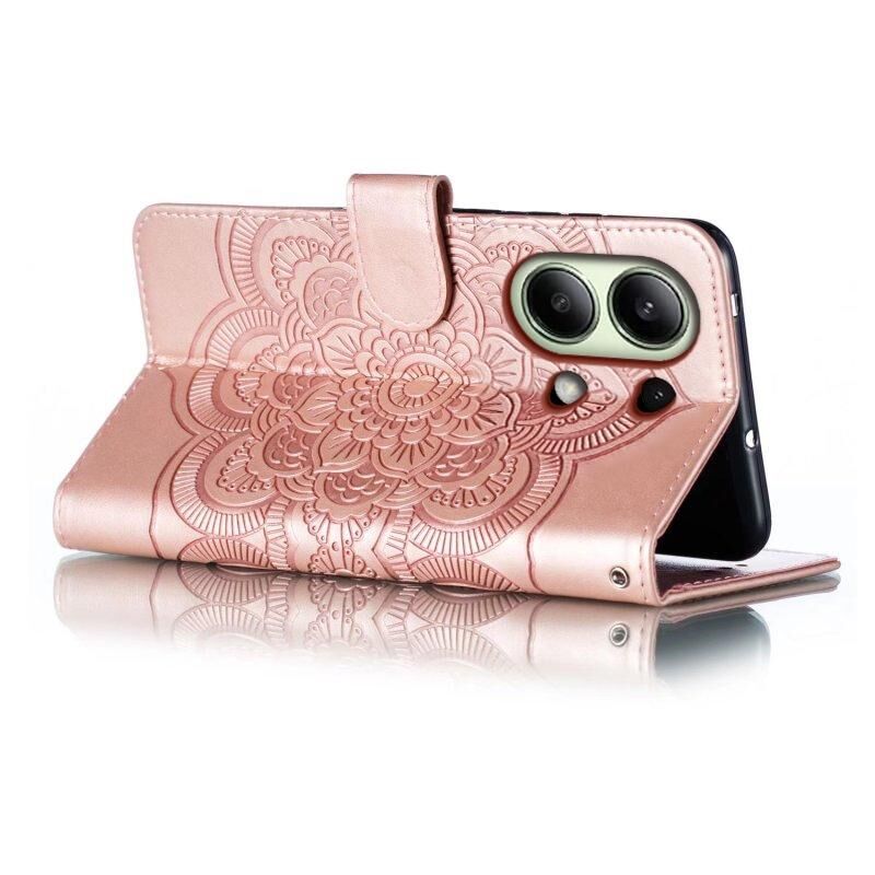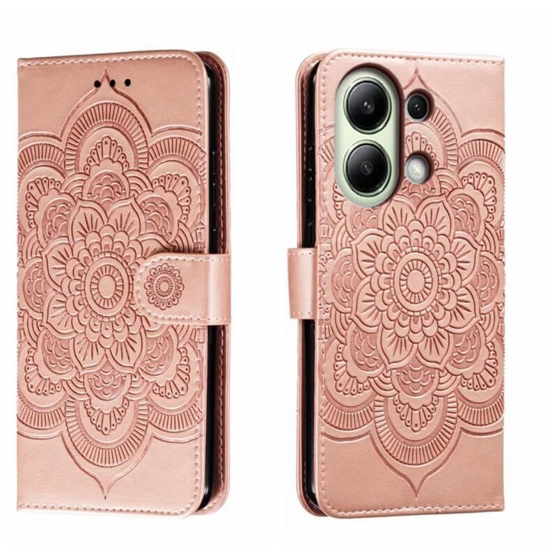 Για Xiaomi Redmi Σημείωση 13 4G Sun Mandala ανάγλυφο μοτίβο τηλέφωνο δερμάτινη θήκη (Rose Gold)