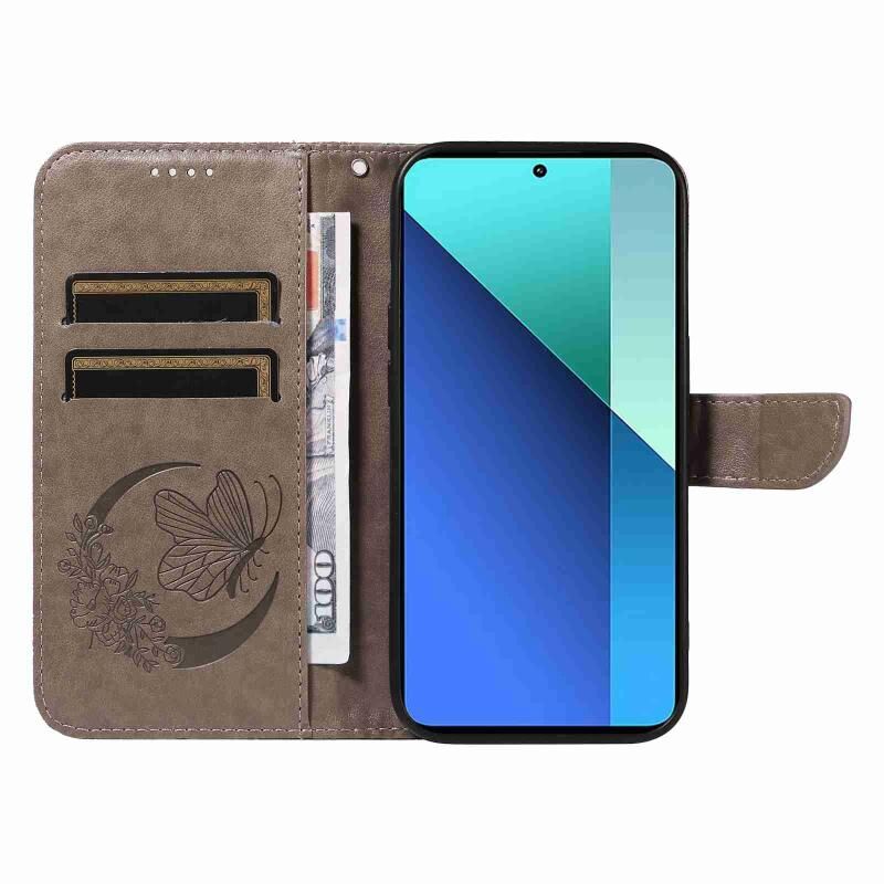 Θήκη τηλεφώνου από δέρμα με ανάγλυφο σχέδιο πεταλούδας Swallowtail για Xiaomi Redmi Note 13 4G (Μπλε)