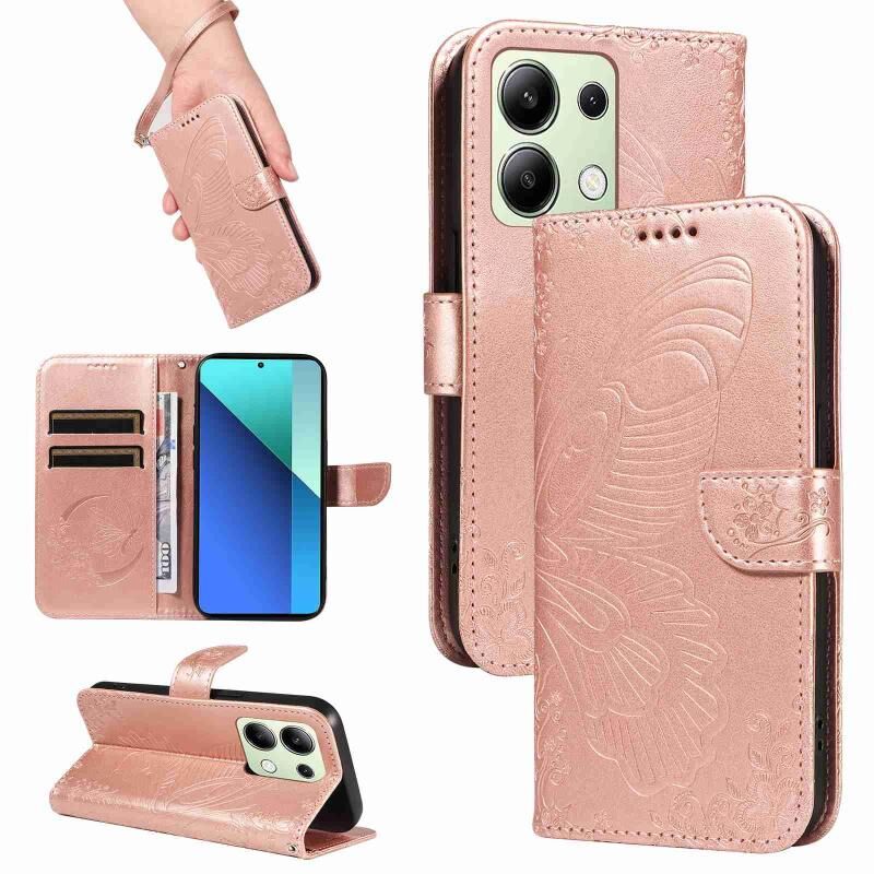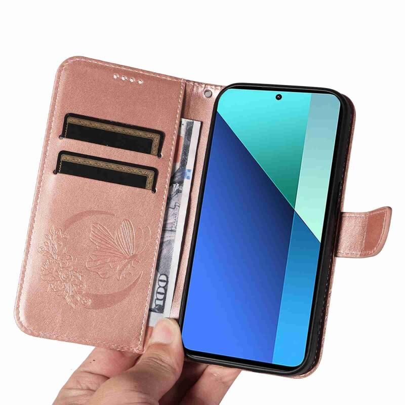 Θήκη τηλεφώνου από δέρμα με ανάγλυφο σχέδιο πεταλούδας Swallowtail για Xiaomi Redmi Note 13 4G (Μπλε)