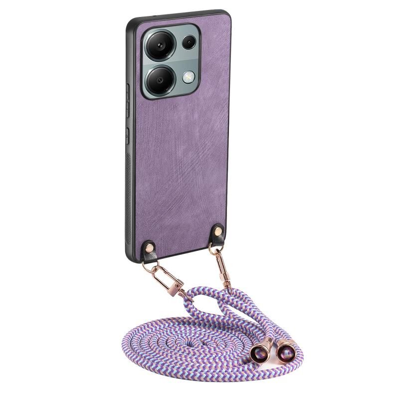 Για Xiaomi Redmi Note 13 4G Vintage δέρμα PC πίσω κάλυψη τηλέφωνο υπόθεση με λουράκι σταυρού (μωβ)