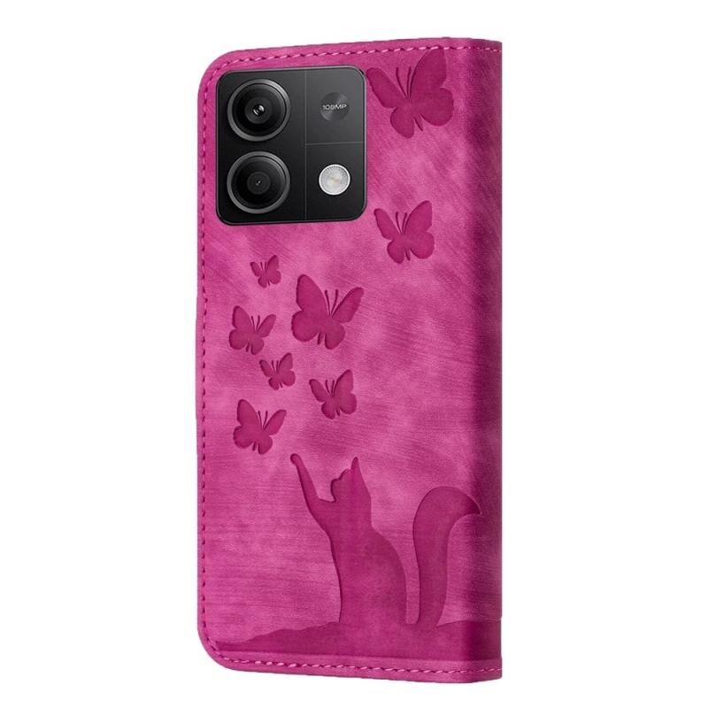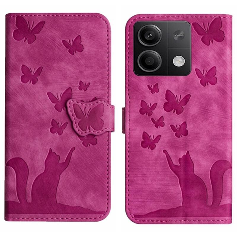Για Xiaomi Redmi Note 13 5G Θήκη Δερμάτινη με ανάγλυφο σχέδιο γάτας - Flip (Ροζ)