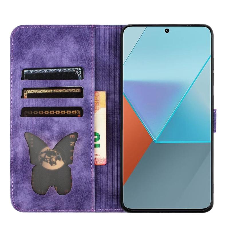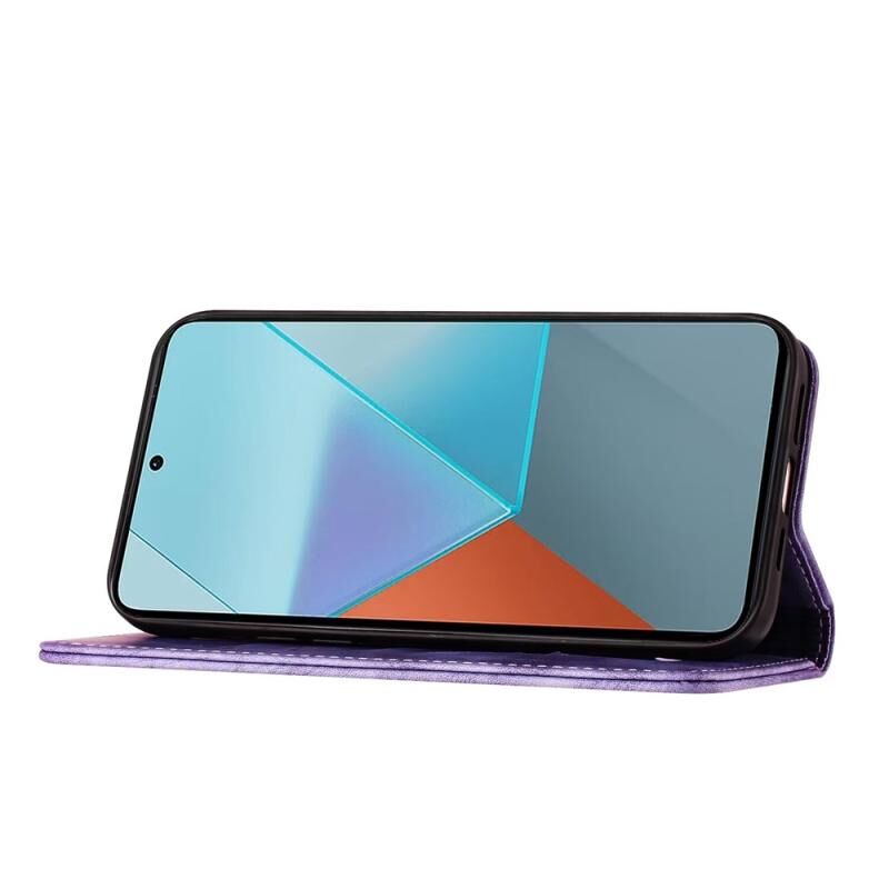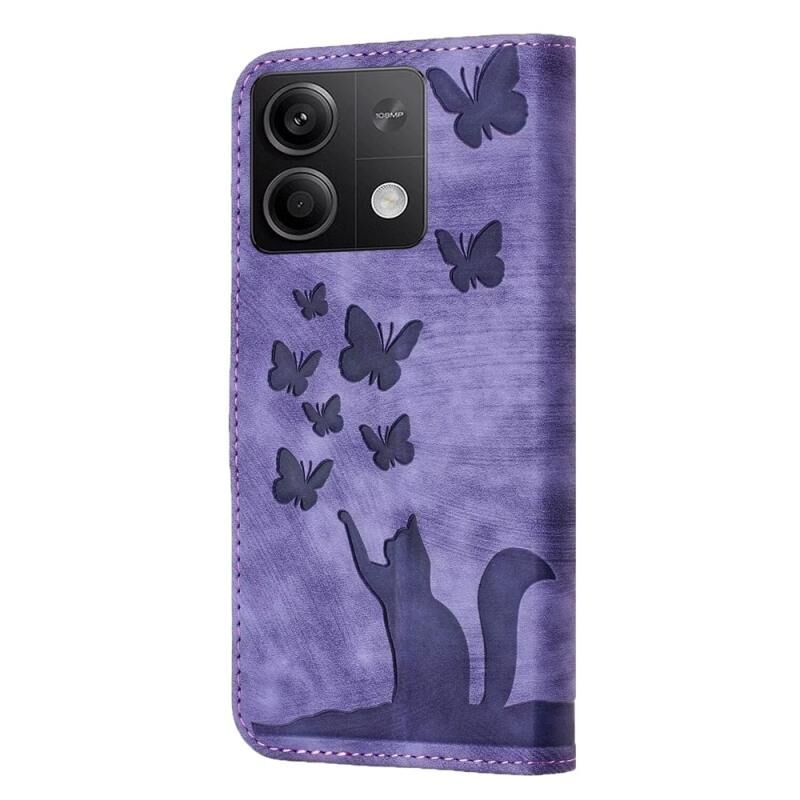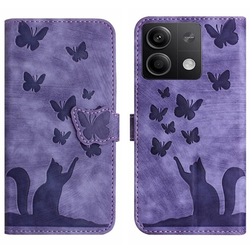 Για Xiaomi Redmi Note 13 5G Θήκη Δερμάτινη με ανάγλυφο σχέδιο γάτας - Flip (Μωβ)