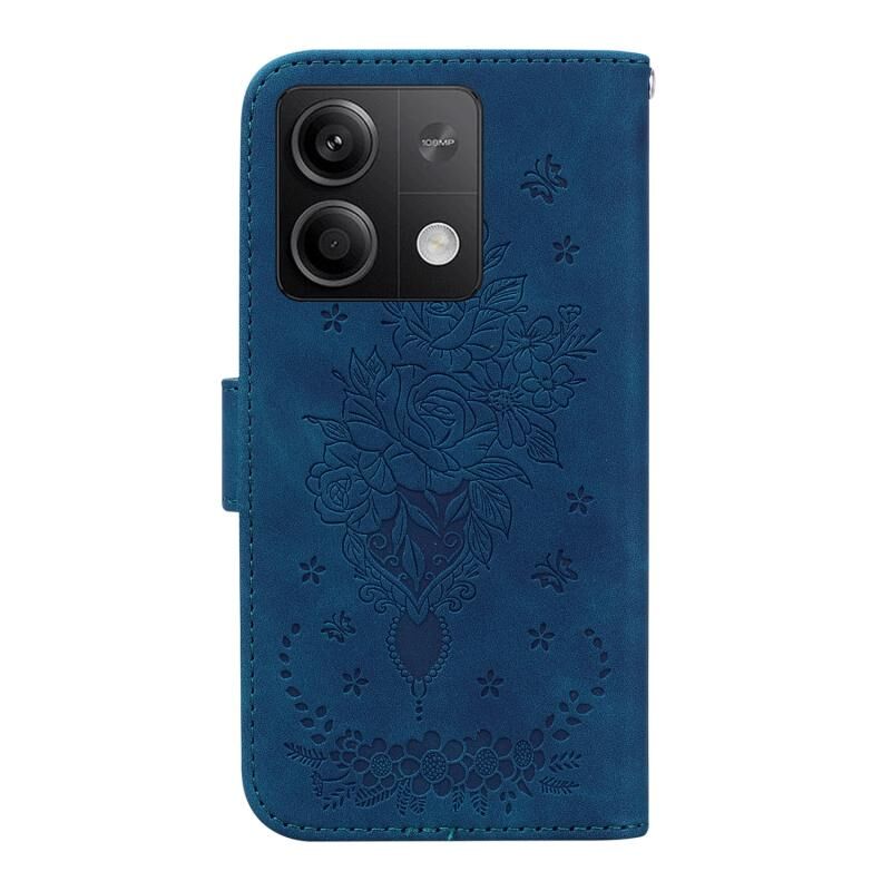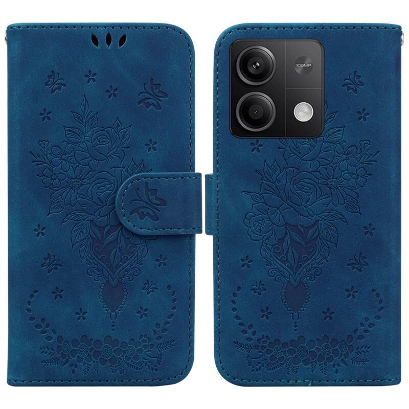 Για Xiaomi Redmi Note 13 5G πεταλούδα Rose ανάγλυφο δέρμα τηλέφωνο υπόθεση (μπλε)