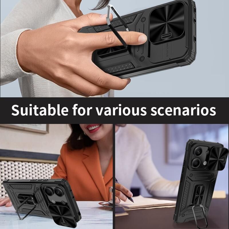 Για Xiaomi Redmi Note 13 5G Camshield ρομπότ TPU υβριδική θήκη τηλεφώνου PC (Μαύρο)