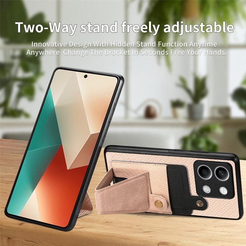Θήκη κινητού τηλεφώνου για Xiaomi Redmi Note 13 5G από ανθρακονήματα, τύπου πορτοφολιού, με κάρτες και σχήμα K (Βερίκοκο)