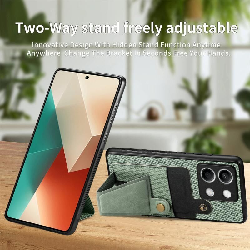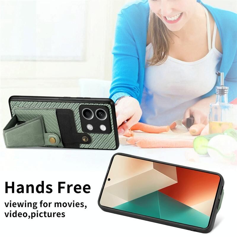 Θήκη κινητού τηλεφώνου για Xiaomi Redmi Note 13 5G, από ανθρακονήματα, τύπου πορτοφολιού με κάρτες και σχήμα K (Πράσινο)