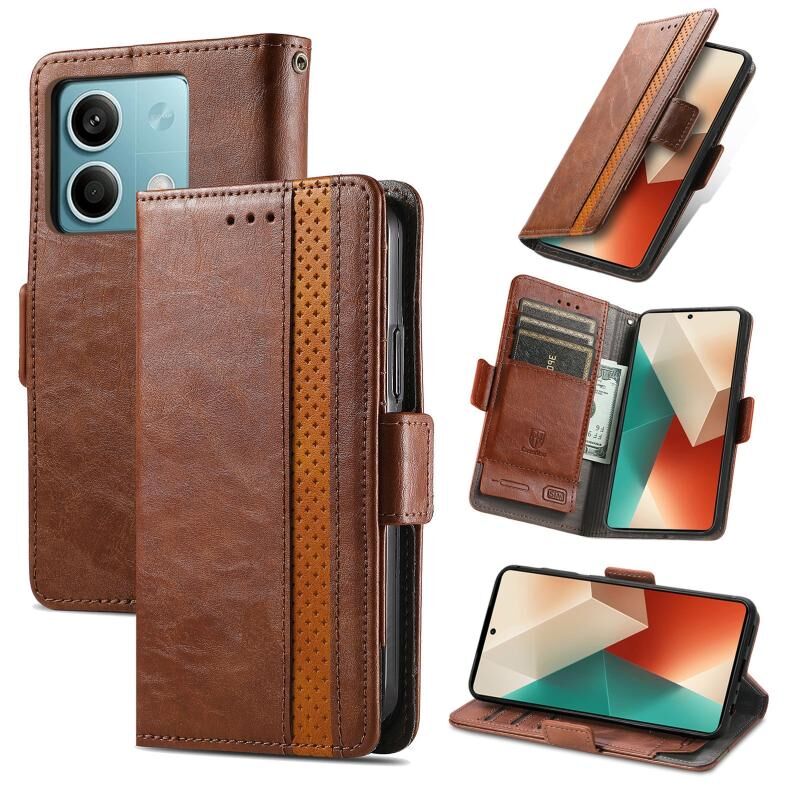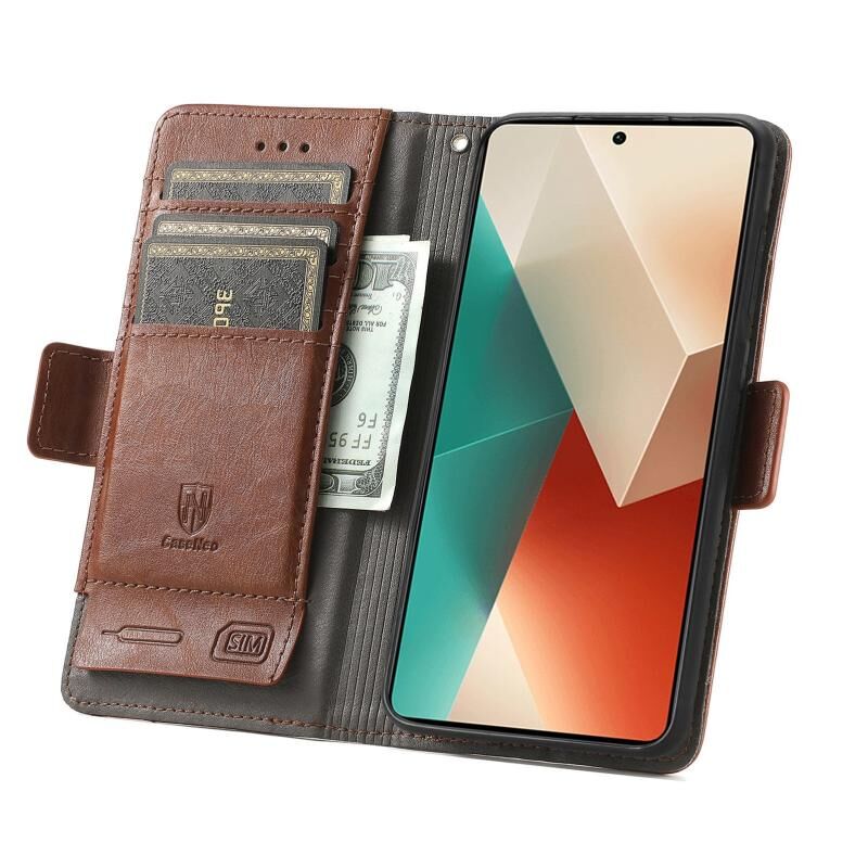 Θήκη για Xiaomi Redmi Note 13 5G CaseNeo, Συνδυασμός Διπλής Μαγνητικής Αγκράφας, Δερμάτινη Θήκη Τηλεφώνου (Καφέ)