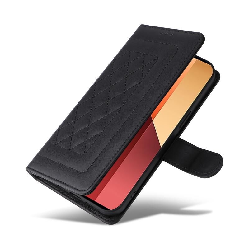 Για Xiaomi Redmi Note 13 5G Diamond Lattice δέρμα Flip τηλέφωνο υπόθεση (μαύρο)