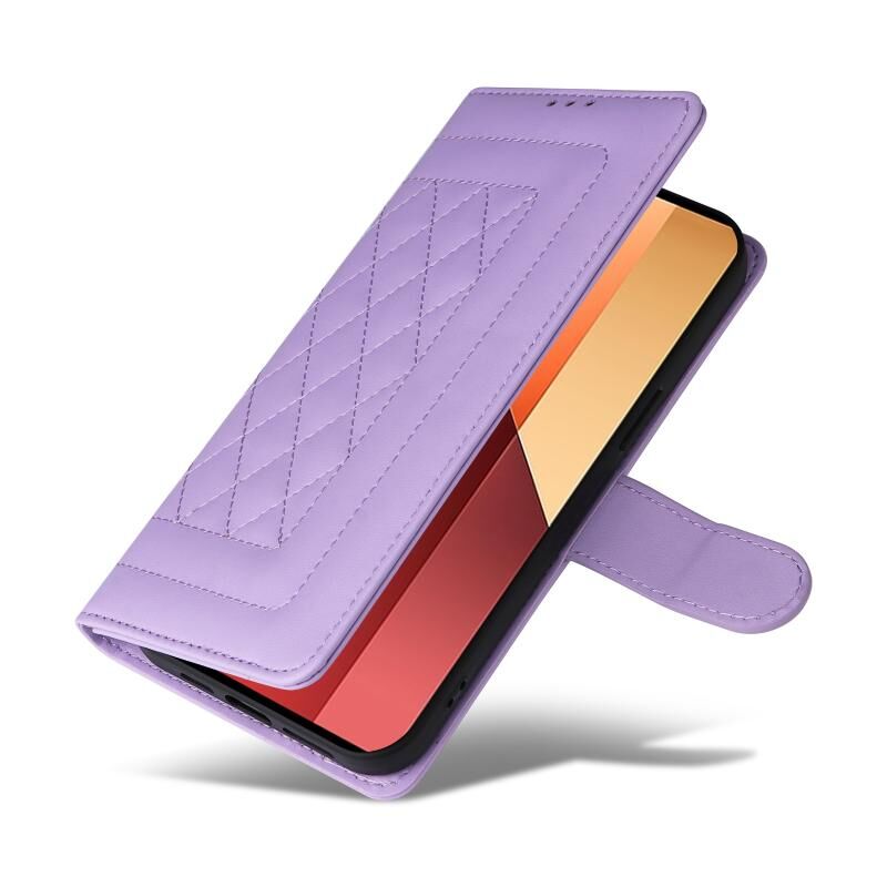 Για Xiaomi Redmi Note 13 5G Diamond Lattice δέρμα Flip υπόθεση τηλεφώνου (Light Purple)