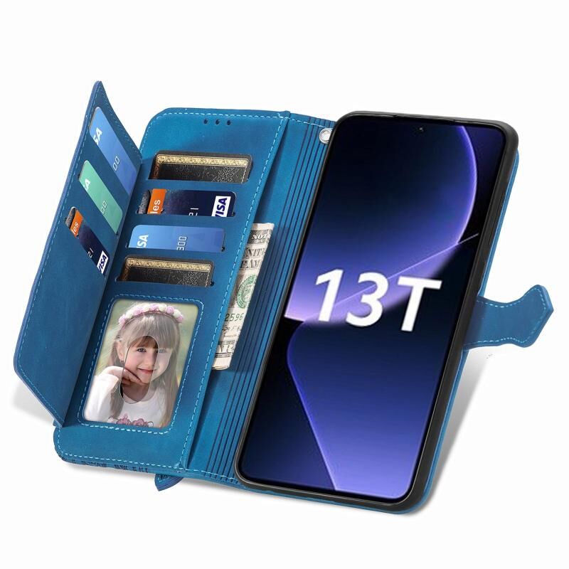 Για Xiaomi Redmi Σημείωση 13 5G ανάγλυφο λουλούδι φερμουάρ δερμάτινη θήκη τηλεφώνου (μπλε)