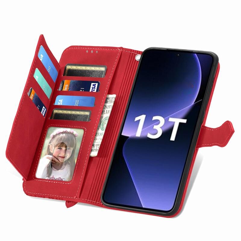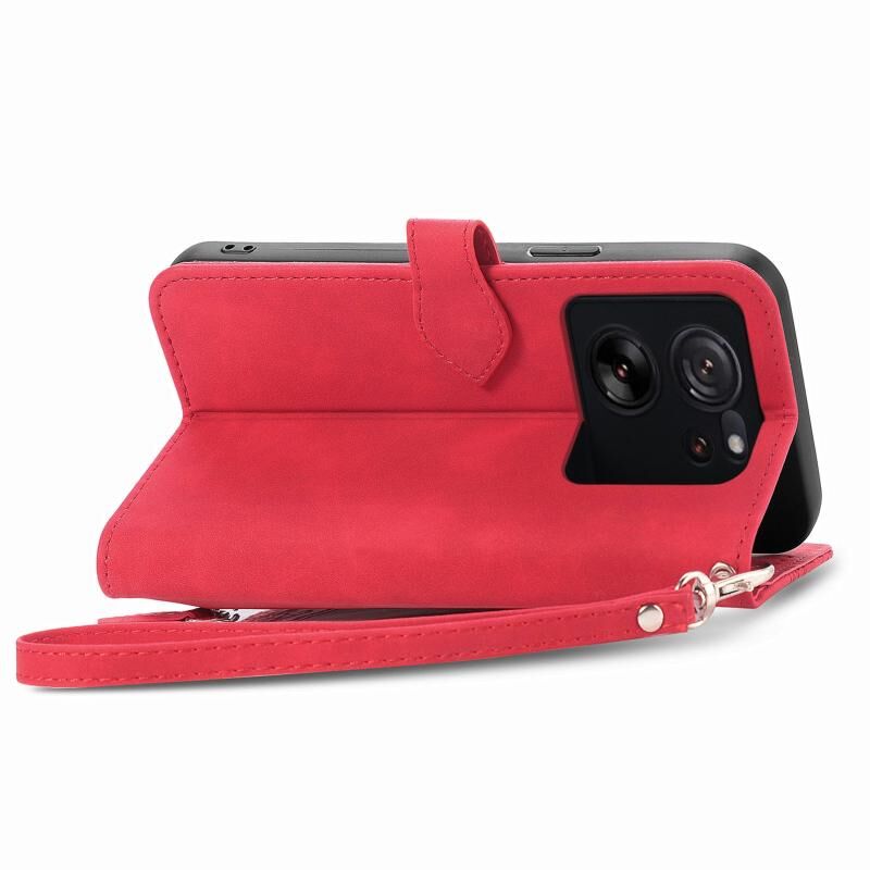 Για Xiaomi Redmi Σημείωση 13 5G ανάγλυφο λουλούδι φερμουάρ δερμάτινη θήκη τηλεφώνου (κόκκινο)