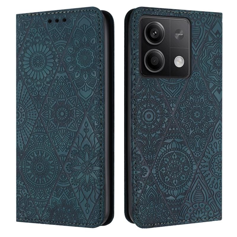 Θήκη τηλεφώνου από δέρμα με απορρόφηση και εθνοτικό ανάγλυφο για Xiaomi Redmi Note 13 5G (Μπλε)