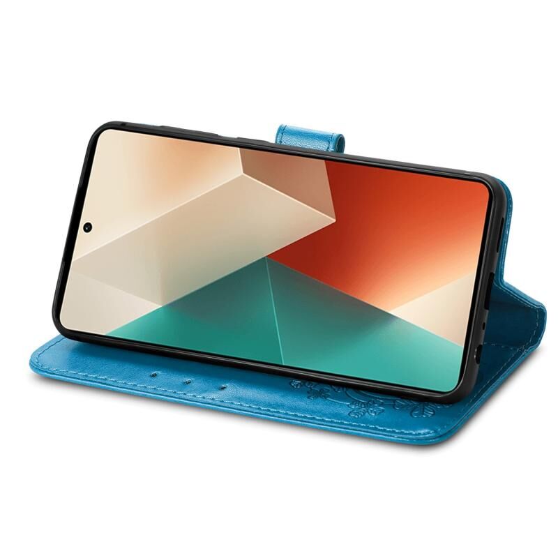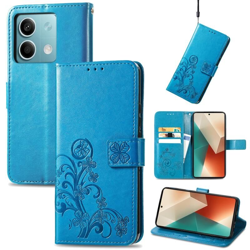 Για Xiaomi Redmi Note 13 5G τετράφυλλο κούμπωμα ανάγλυφη δερμάτινη θήκη τηλεφώνου (Μπλε)