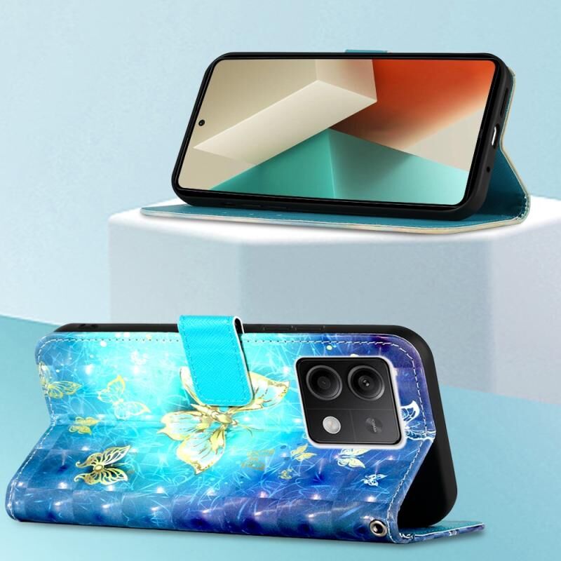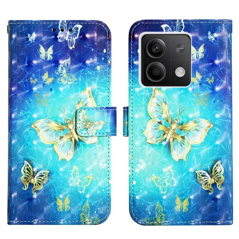 Θήκη τηλεφώνου δερμάτινη με οριζόντιο άνοιγμα και τρισδιάστατη ζωγραφική για Xiaomi Redmi Note 13 5G Global (Χρυσή Πεταλούδα)