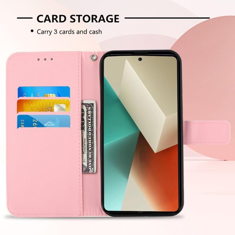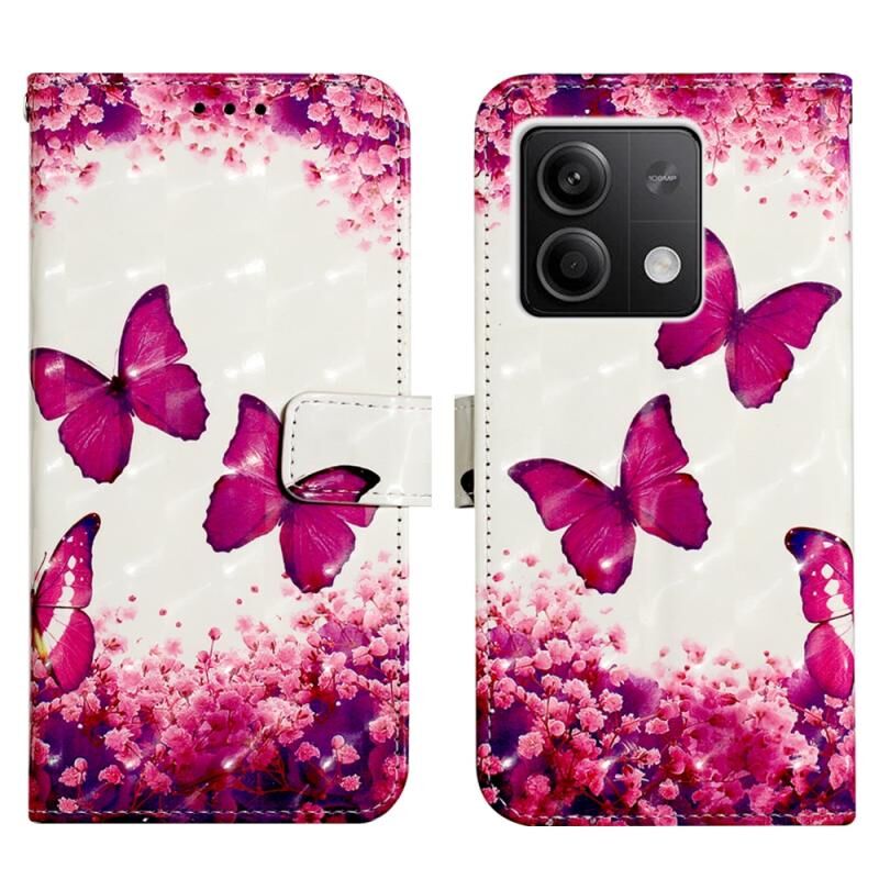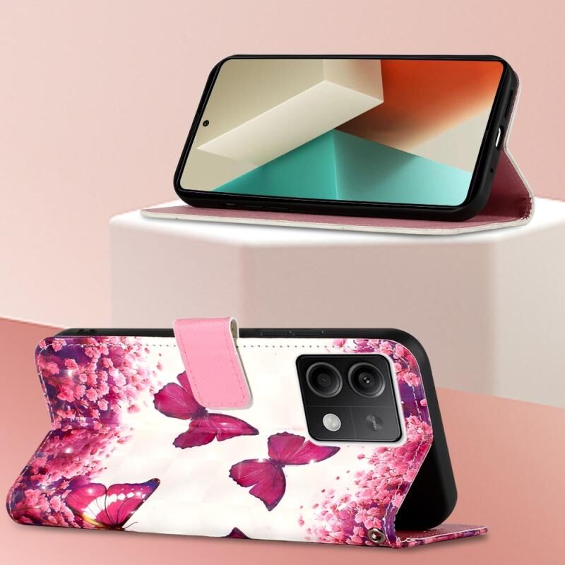 Θήκη τηλεφώνου δερμάτινη με οριζόντιο άνοιγμα και τρισδιάστατη ζωγραφική για Xiaomi Redmi Note 13 5G Global (Ροζ Πεταλούδα)
