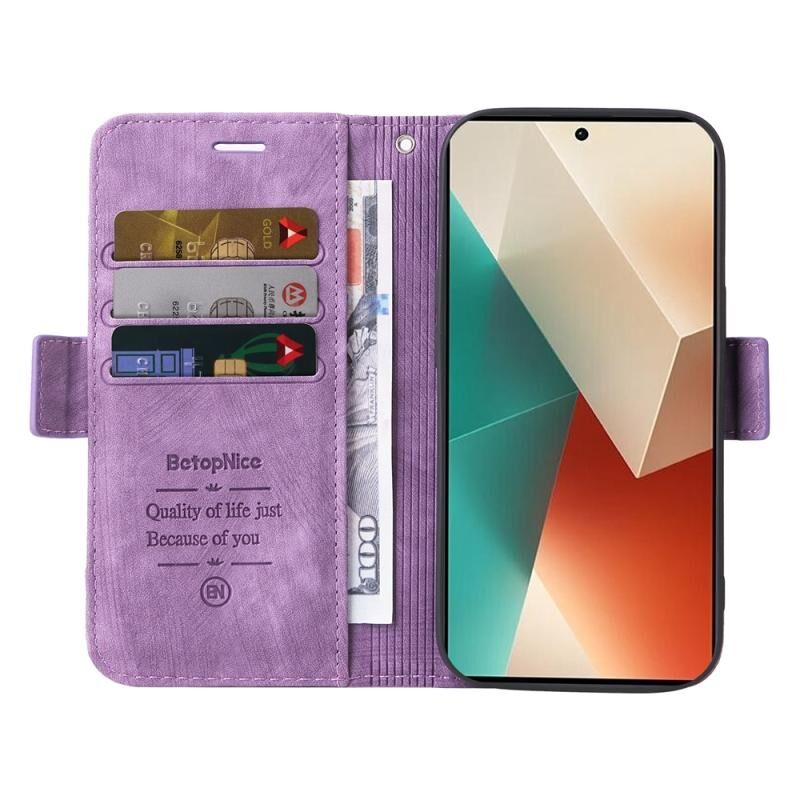Για Xiaomi Redmi Note 13 5G Global BETOPNICE Διπλής όψης πόρπη δερμάτινη θήκη τηλεφώνου (μωβ) (BETOPNICE)