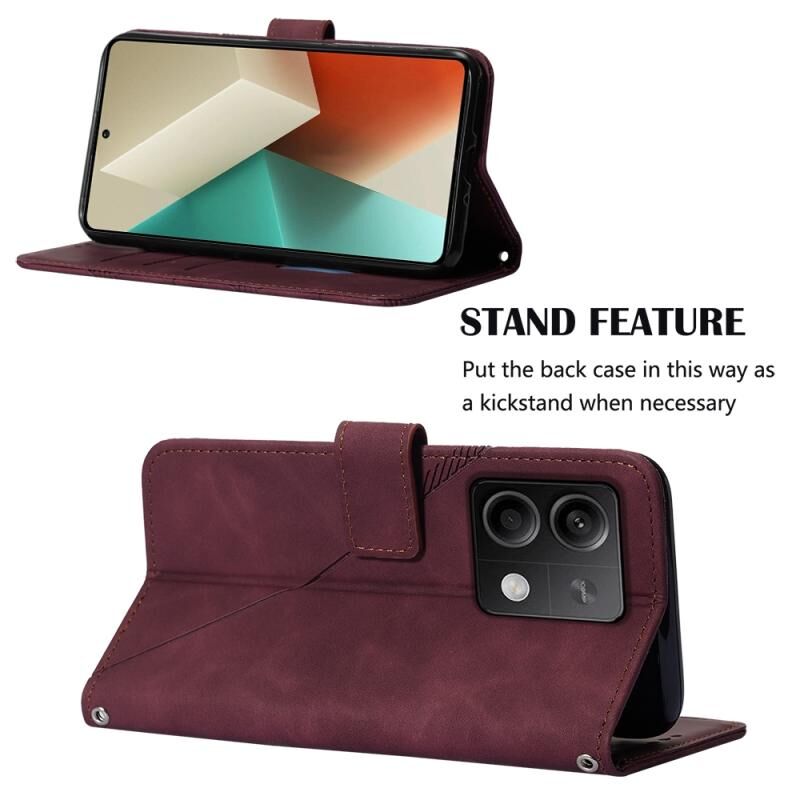 Για Xiaomi Redmi Note 13 5G Παγκόσμια Crossbody 3D ανάγλυφο Flip δέρμα υπόθεση τηλεφώνου (Κρασοκόκκινο)