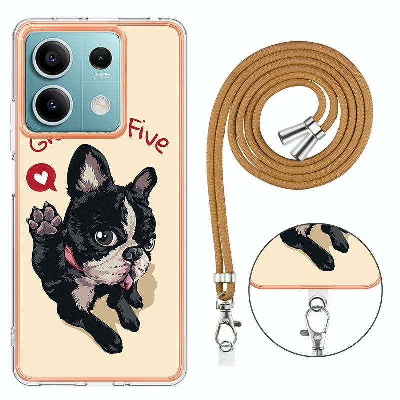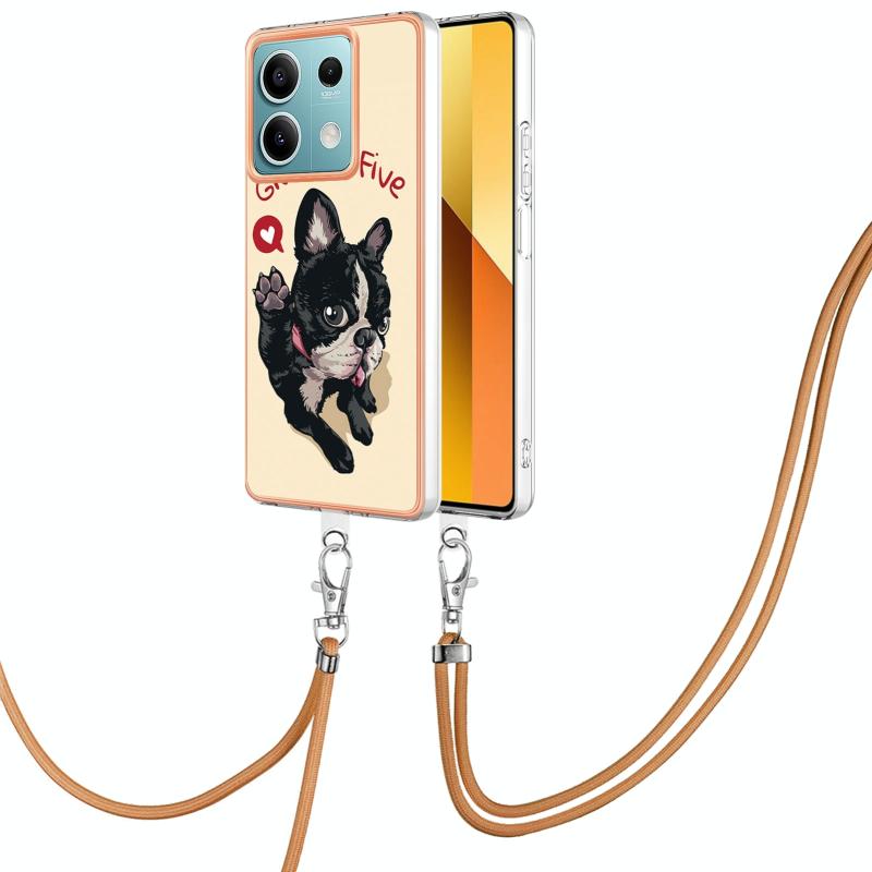 Για Xiaomi Redmi Note 13 5G Global Ηλεκτρολυτική Διπλής Όψης Θήκη με Λουρί (Τυχερός Σκύλος)