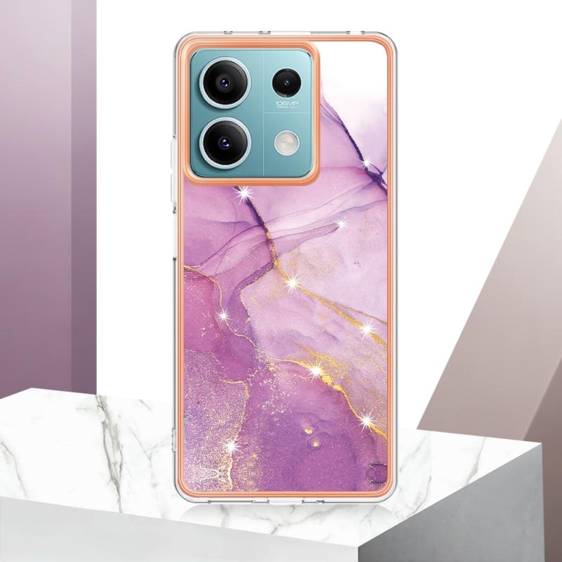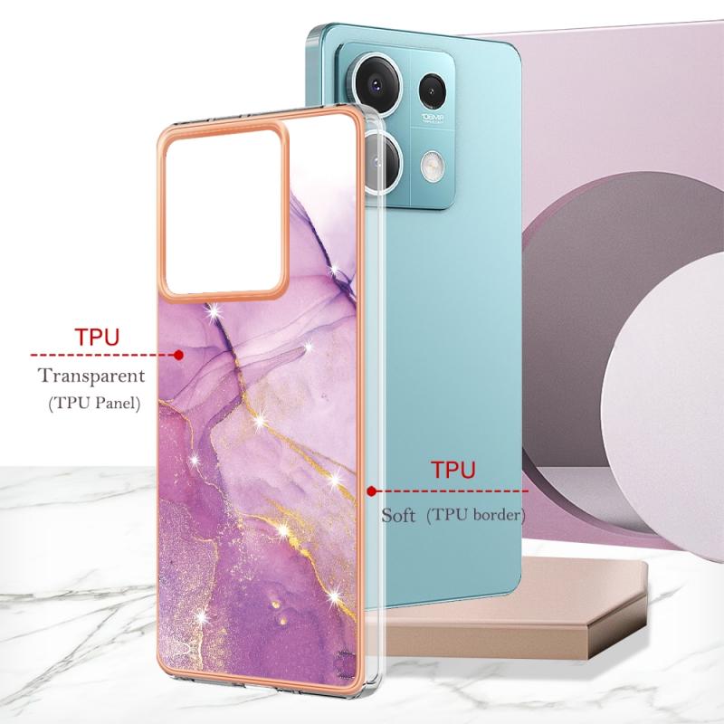 For Xiaomi Redmi Note 13 5G Global Electroplating Marble Dual-side IMD Phone Case(Purple 002)