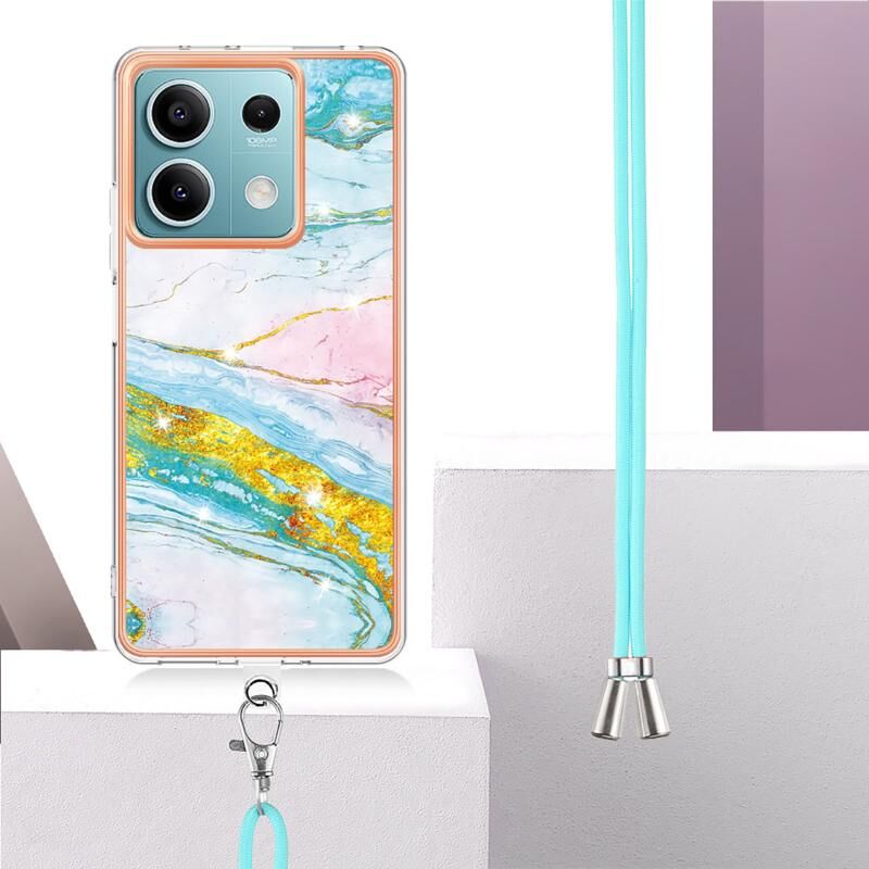For Xiaomi Redmi Note 13 5G Global Electroplating Marble Dual-side IMD Phone Case with Lanyard(Green 004)