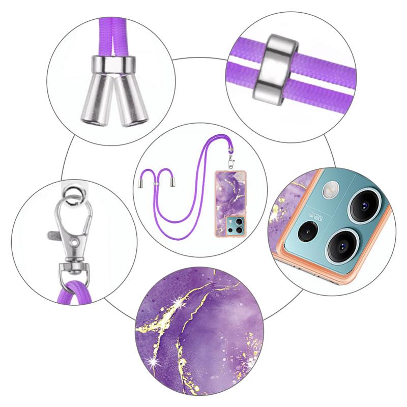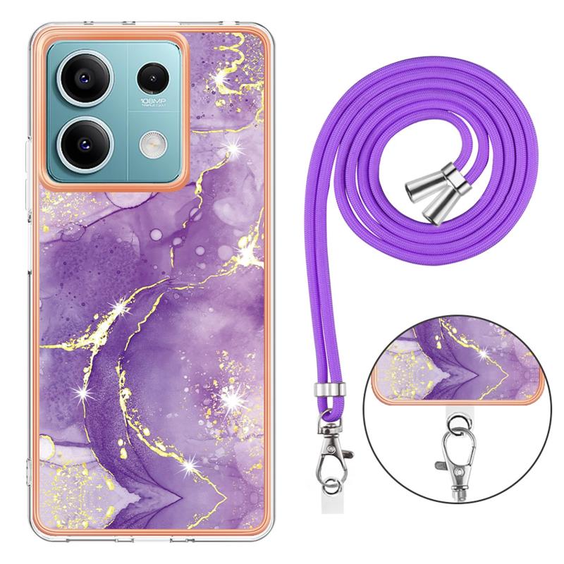 For Xiaomi Redmi Note 13 5G Global Electroplating Marble Dual-side IMD Phone Case with Lanyard(Purple 002)