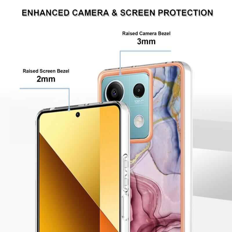 For Xiaomi Redmi Note 13 5G Global Electroplating Marble Dual-side IMD TPU Phone Case(Rose Red 014)