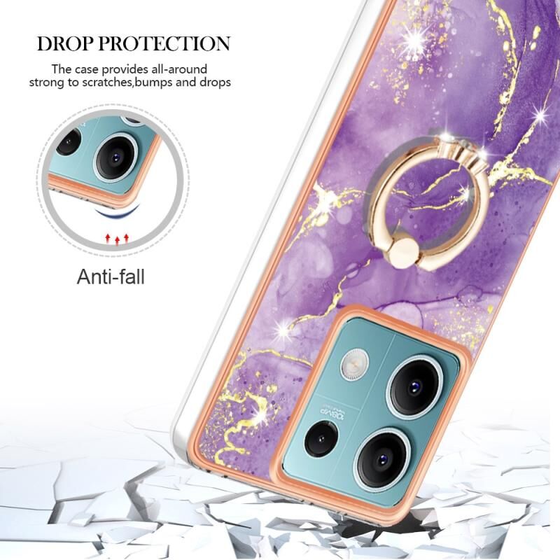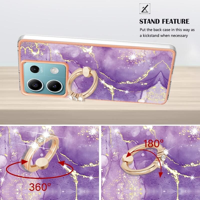 For Xiaomi Redmi Note 13 5G Global Electroplating Marble IMD TPU Phone Case with Ring Holder(Purple 002)