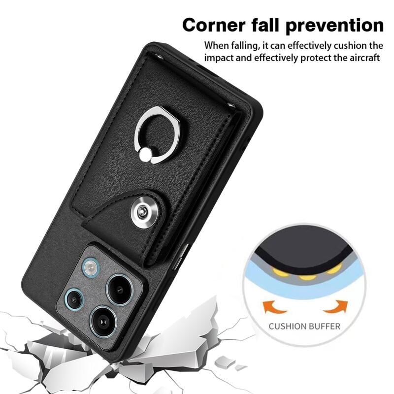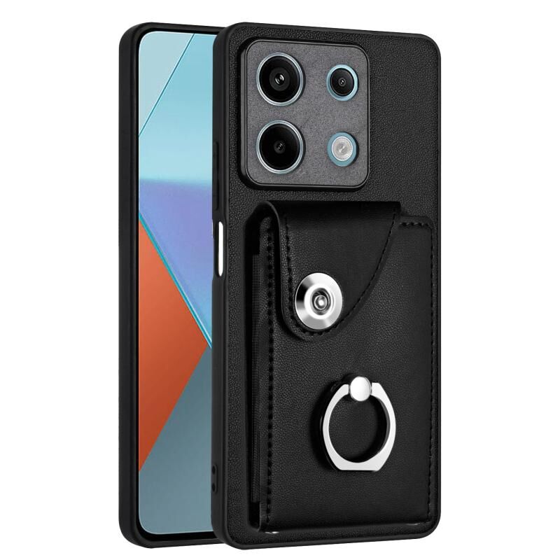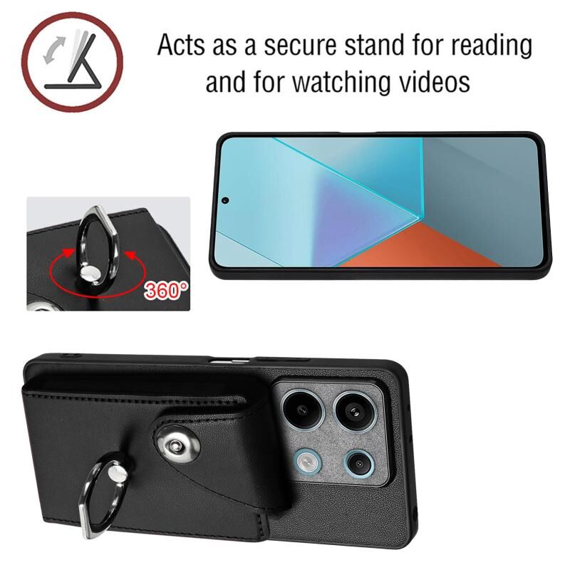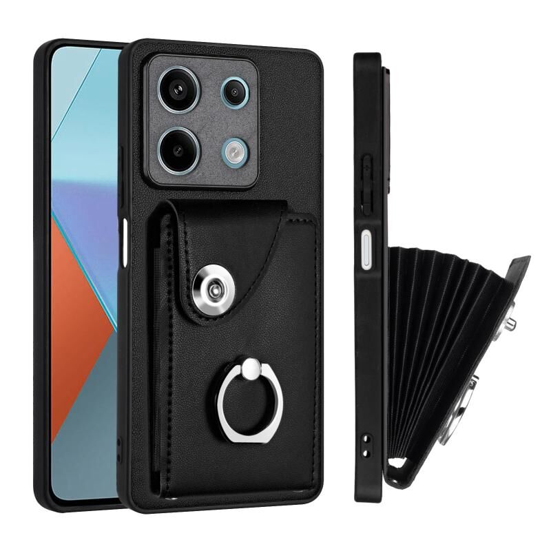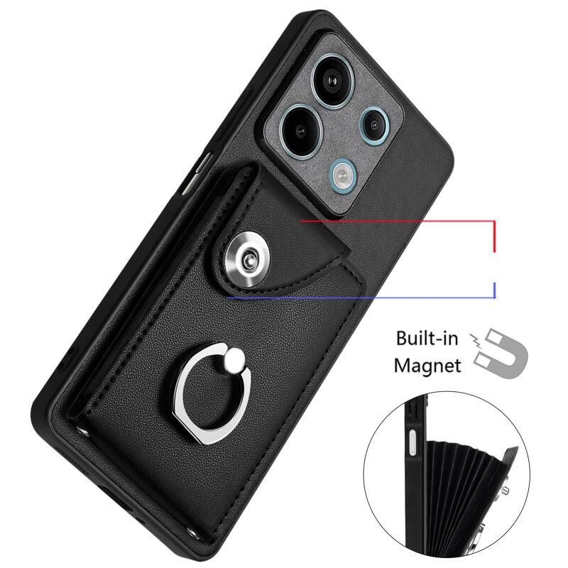 Για Xiaomi Redmi Σημείωση 13 5G Παγκόσμια Οργάνων κάρτα τσάντα δαχτυλίδι κάτοχος PU τηλέφωνο υπόθεση (μαύρο)