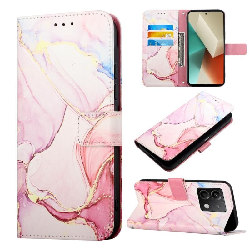 Θήκη τηλεφώνου από δέρμα με σχέδιο μάρμαρου για Xiaomi Redmi Note 13 5G Global PT003 (Ροζ, Μωβ, Χρυσό)