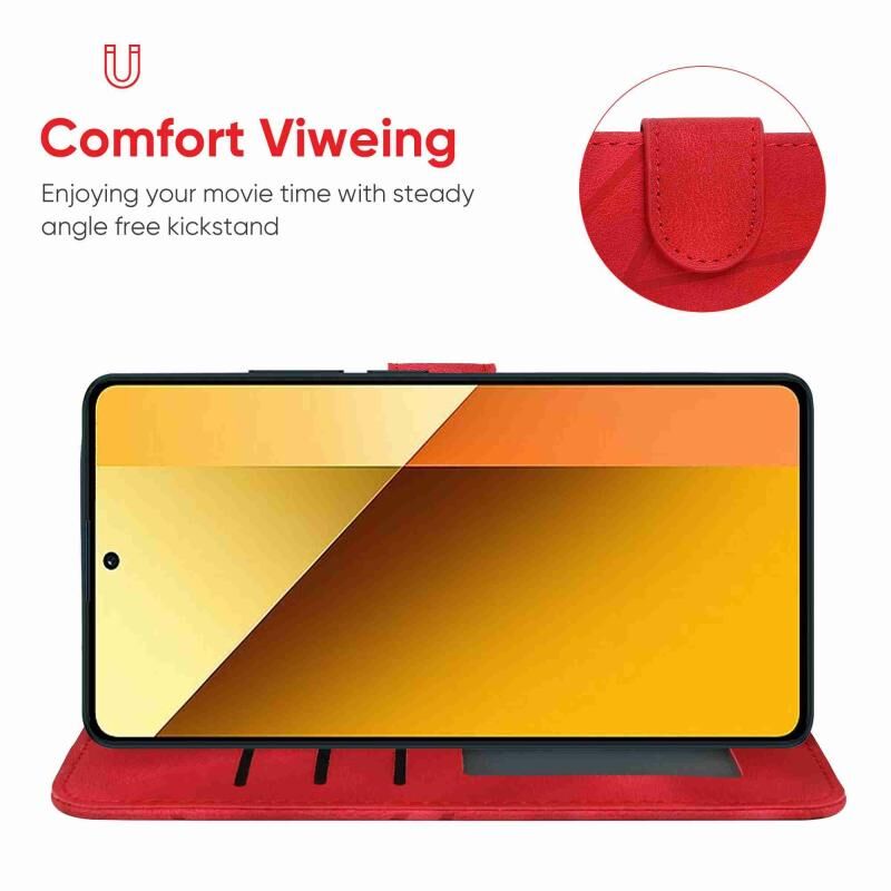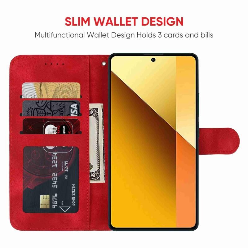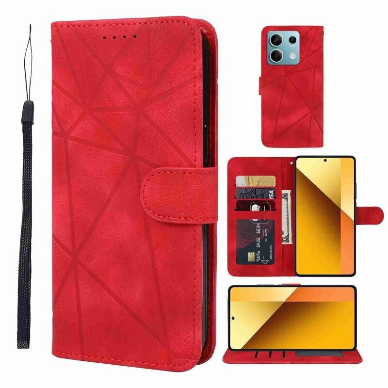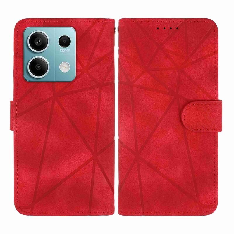 Για Xiaomi Redmi Note 13 5G Global Skin Feel γεωμετρικές γραμμές δερμάτινη θήκη τηλεφώνου (κόκκινο)