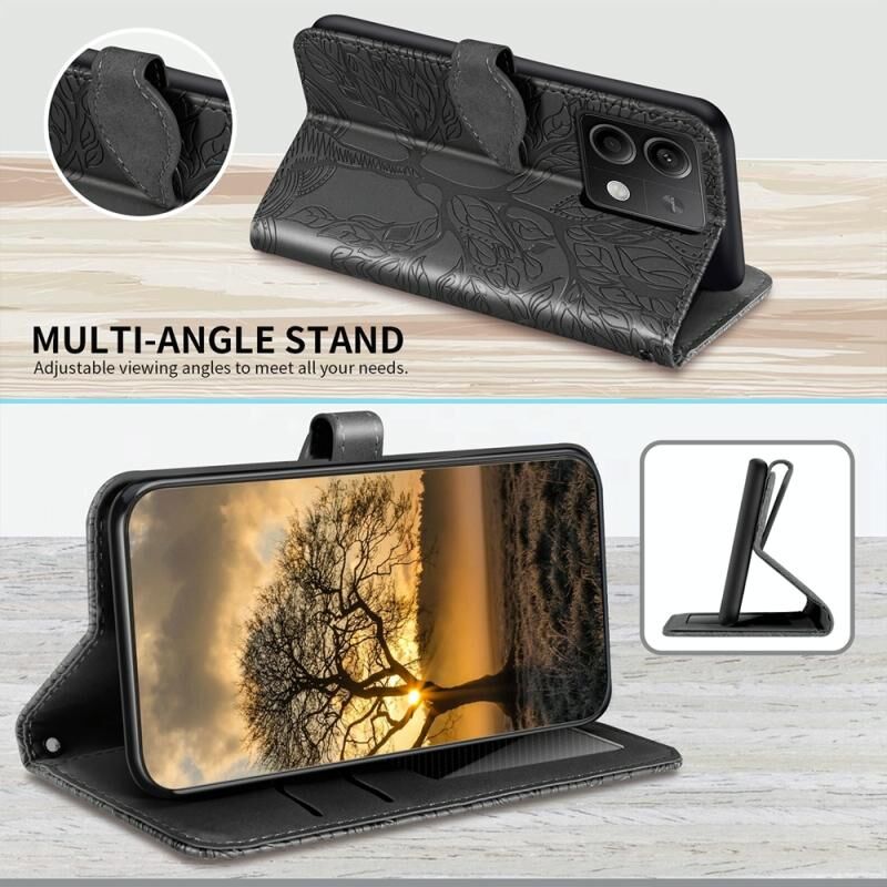 Για Xiaomi Redmi Note 13 5G Life Tree ανάγλυφο μοτίβο δερμάτινη θήκη τηλεφώνου (Μαύρο)