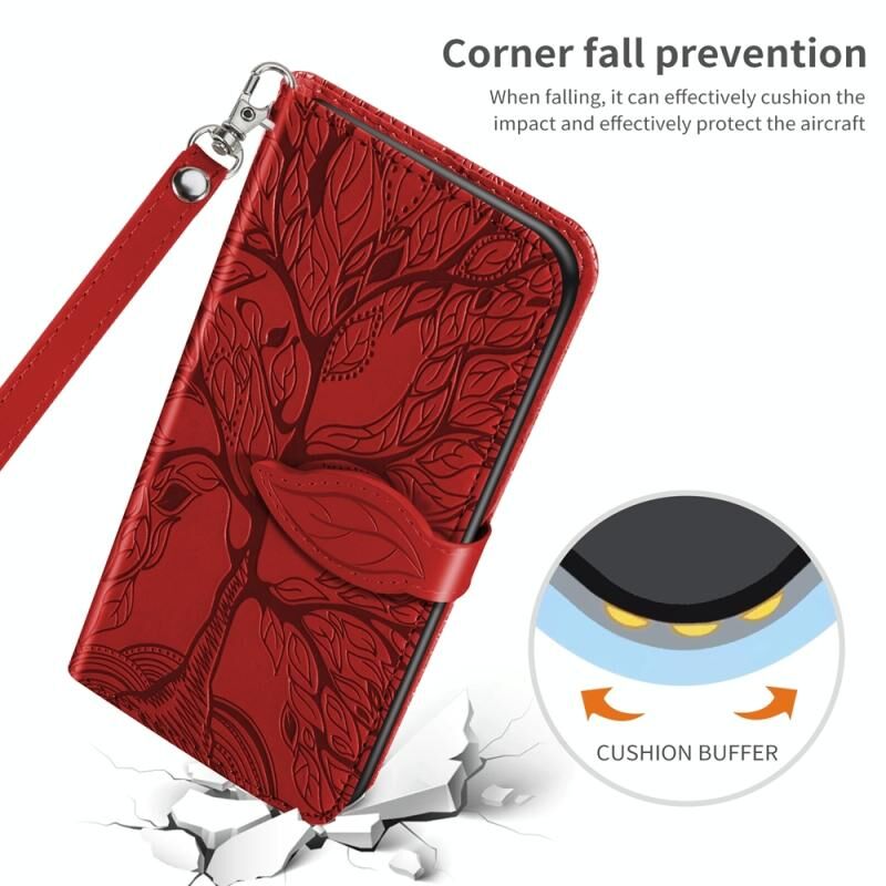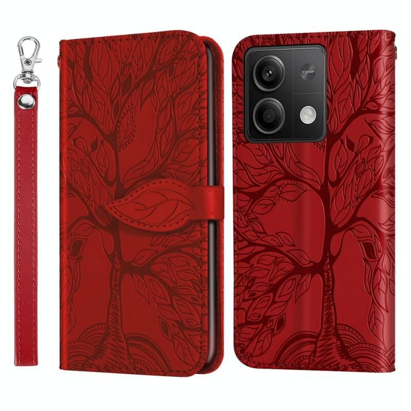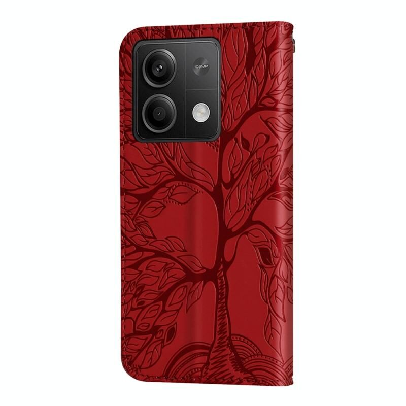 Για Xiaomi Redmi Note 13 5G Life Tree ανάγλυφο μοτίβο δερμάτινη θήκη τηλεφώνου (Κόκκινο)