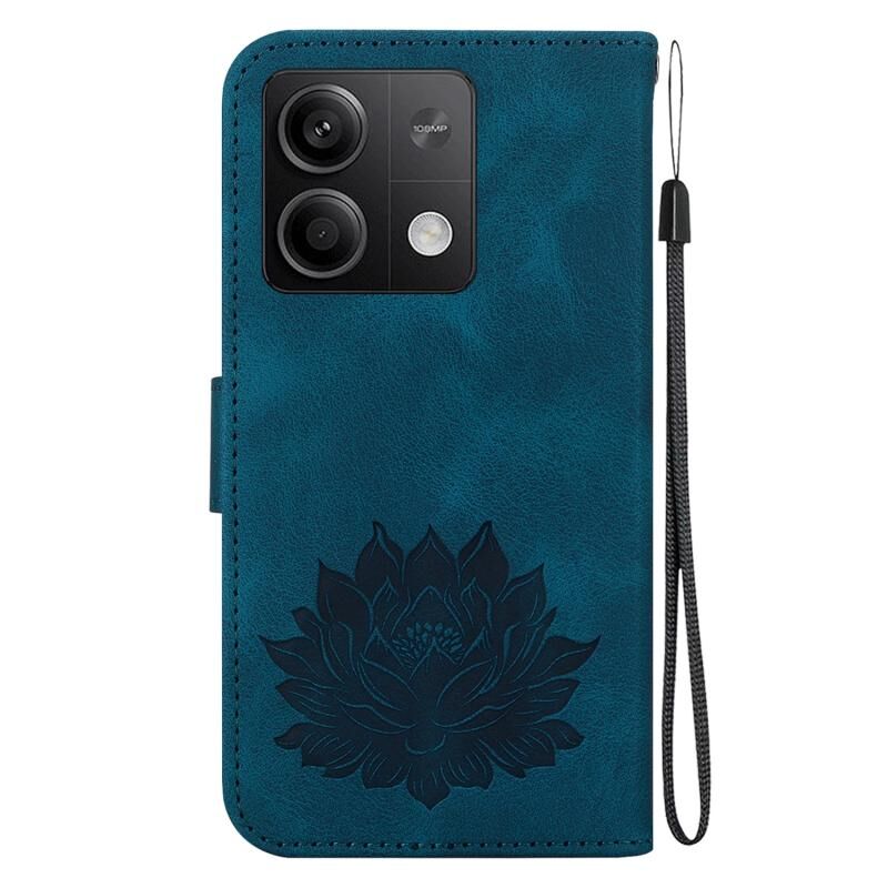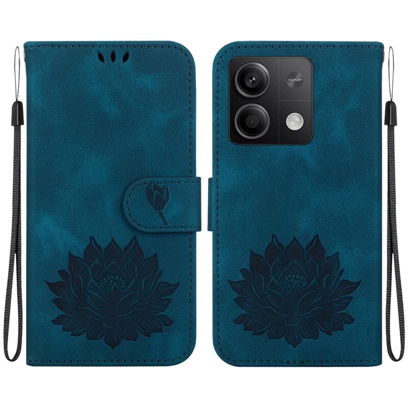 Για Xiaomi Redmi Note 13 5G Lotus ανάγλυφη δερμάτινη θήκη τηλεφώνου (Σκούρο μπλε)