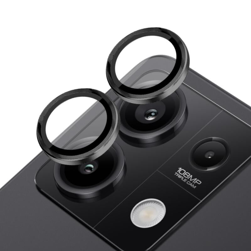 For Xiaomi Redmi Note 13 5G NORTHJO Camera LensCD Vein Metal Ring Tempered Glass Film(Black) (NORTHJO)