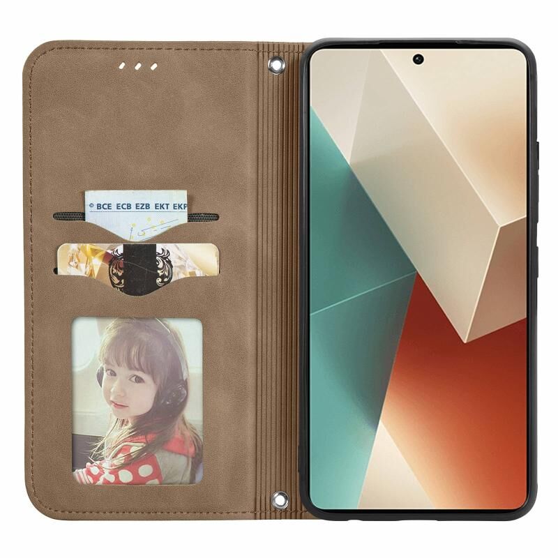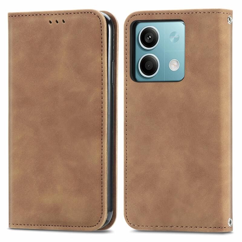 Για Xiaomi Redmi Note 13 5G Retro δέρμα αίσθηση μαγνητική Flip δέρμα τηλέφωνο υπόθεση (Καφέ)