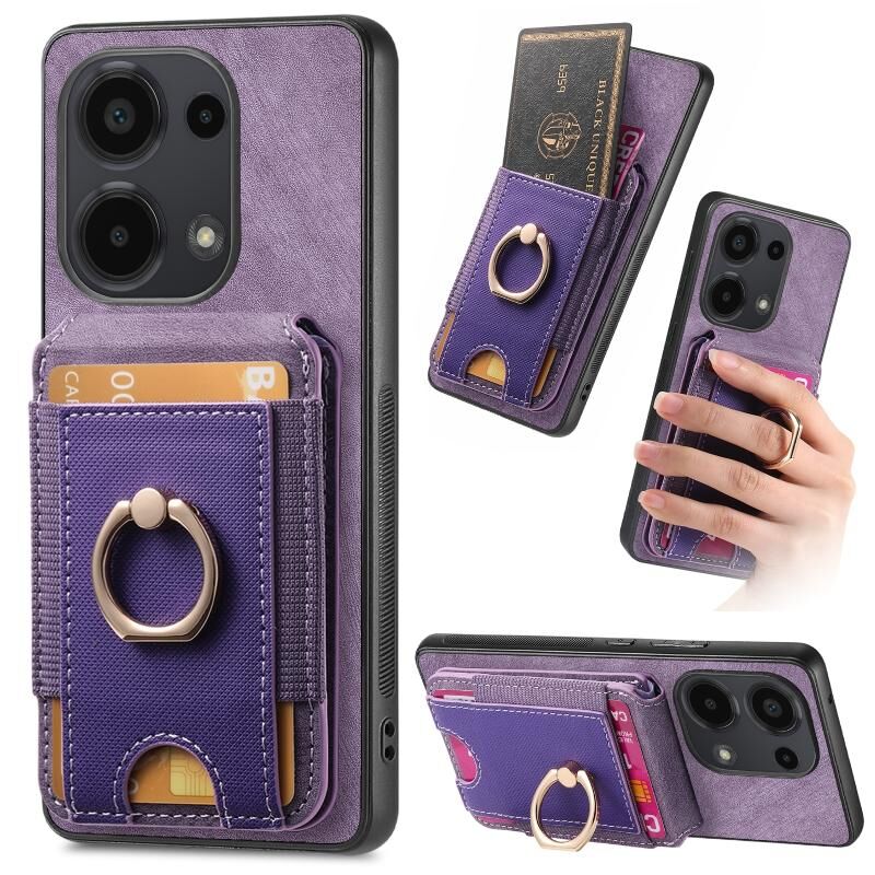 Για Xiaomi Redmi Note 13 5G Retro Splitable μαγνητική Stand κάρτα τσάντα τσάντα δέρμα τηλέφωνο υπόθεση (μωβ)