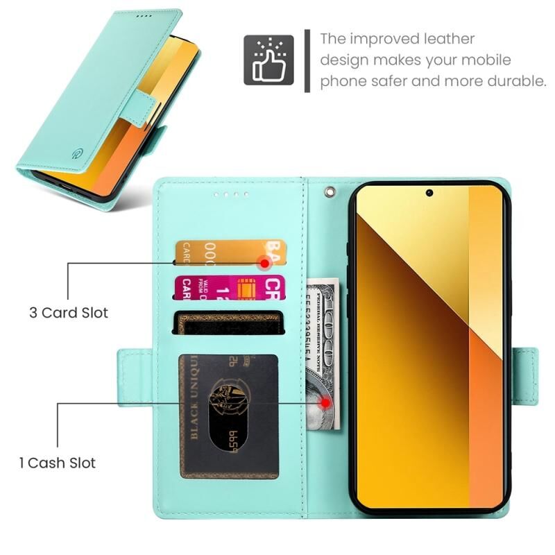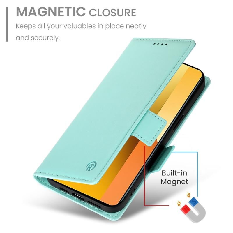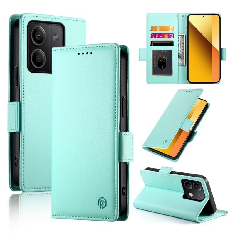 Για Xiaomi Redmi Σημείωση 13 5G Side πόρπη μαγνητική παγωμένο δέρμα τηλέφωνο υπόθεση (πράσινο μέντα)