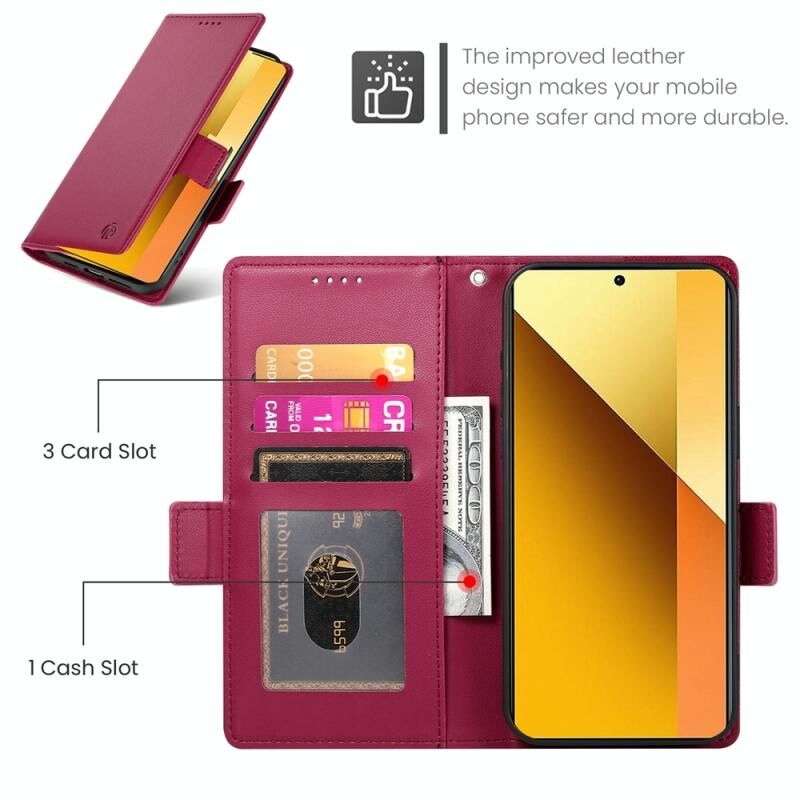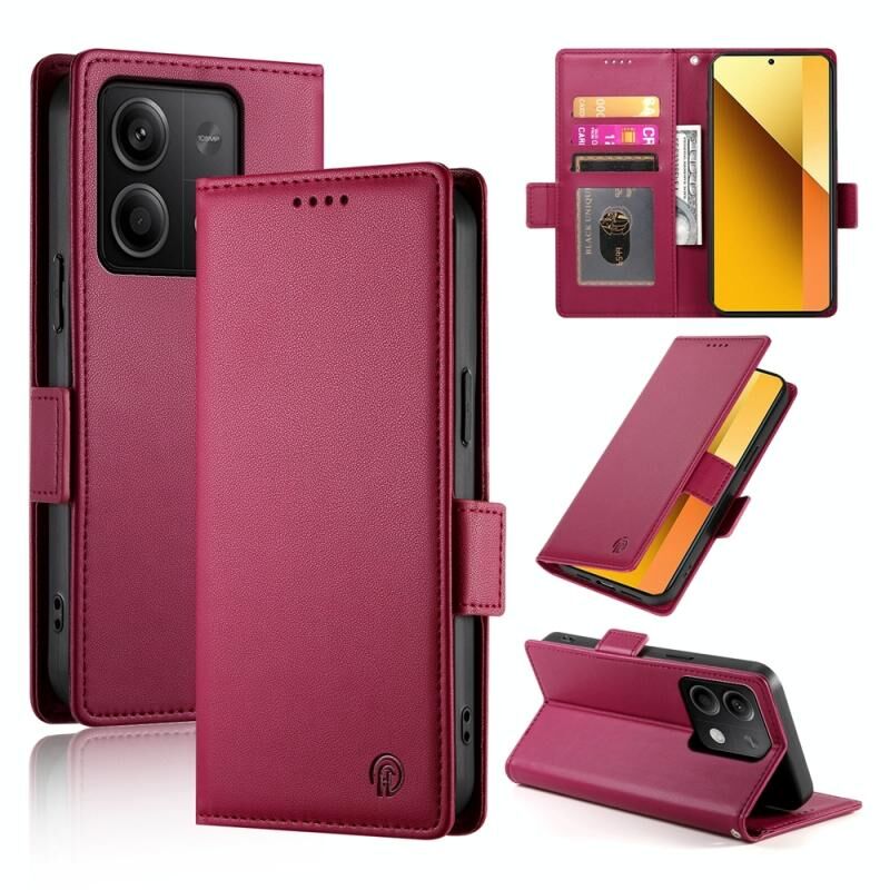 Για Xiaomi Redmi Σημείωση 13 5G Side Πόρπη μαγνητική παγωμένο δέρμα τηλέφωνο υπόθεση (κόκκινο κρασί)