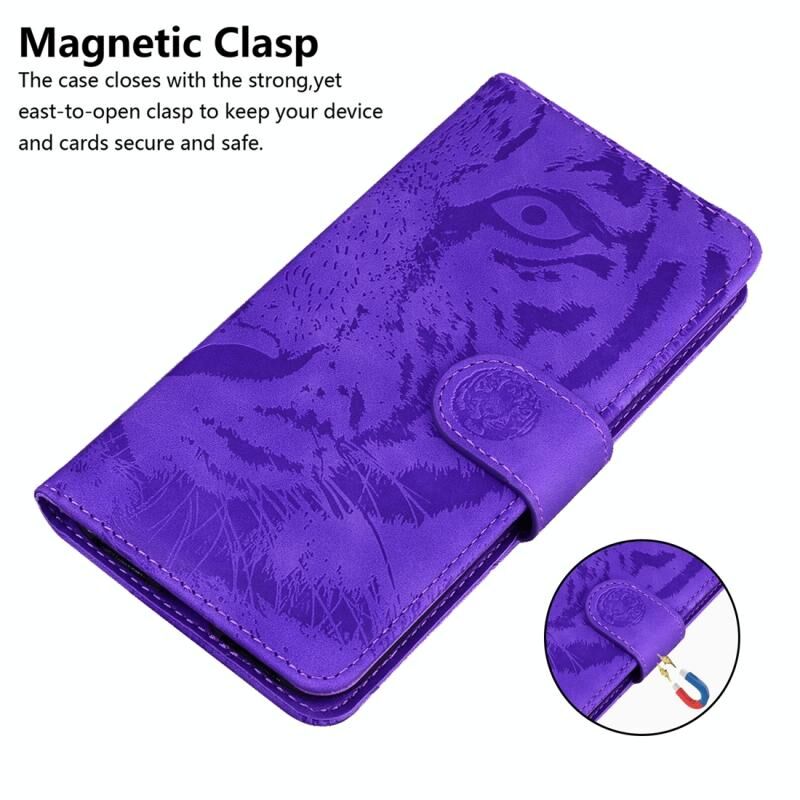 Θήκη δερμάτινη με ανάγλυφο τίγρη για Xiaomi Redmi Note 13 5G (Μωβ)