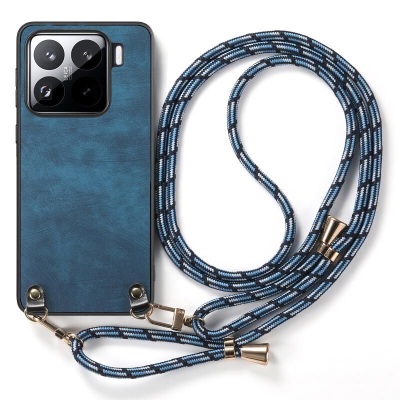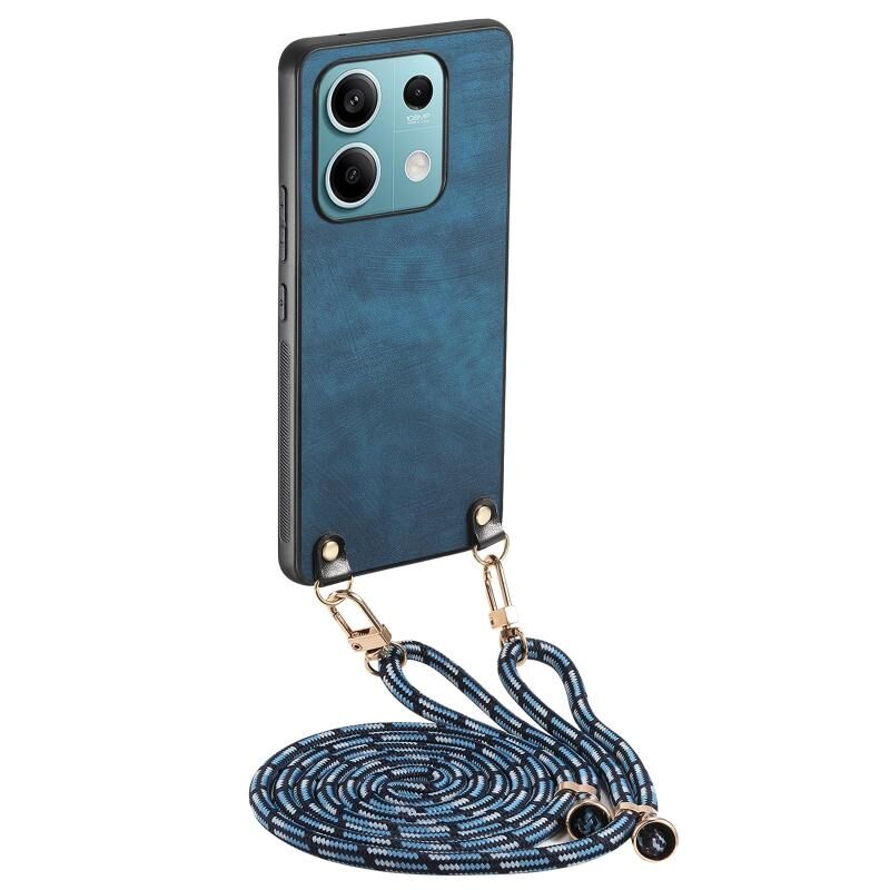 Για Xiaomi Redmi Σημείωση 13 5G Vintage δέρμα PC πίσω κάλυψη τηλέφωνο υπόθεση με λουράκι σταυρού (μπλε)