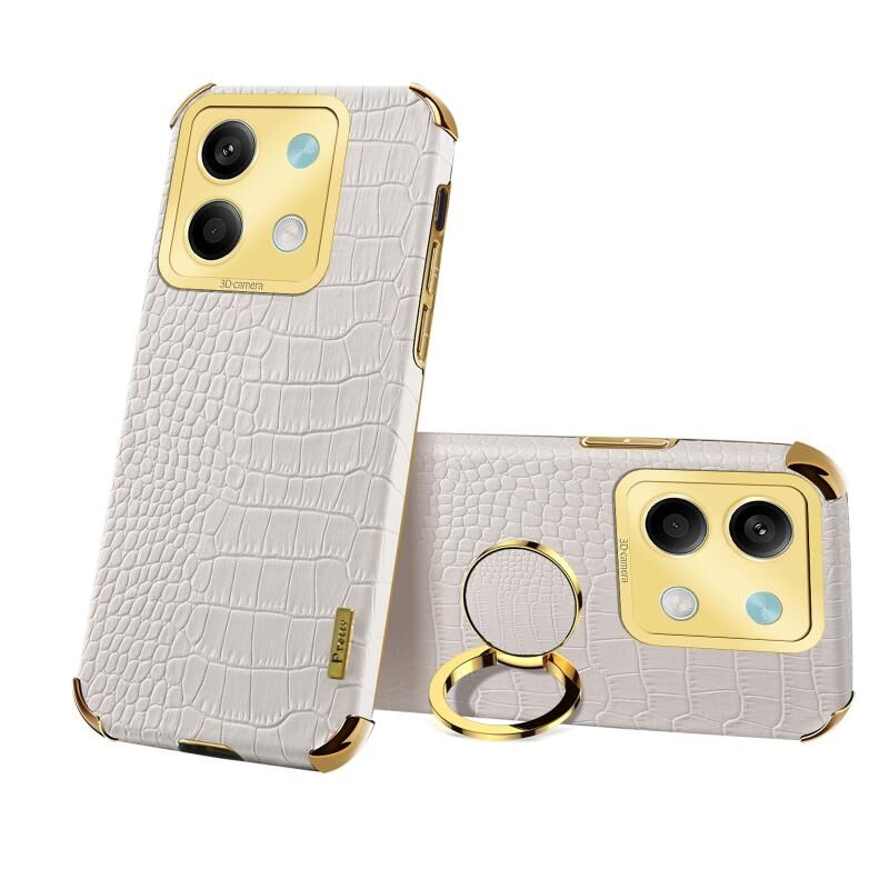Θήκη κινητού τηλεφώνου με δερμάτινη υφή κροκόδειλου και ηλεκτρολυτική επίστρωση 6D για Xiaomi Redmi Note 13 με βάση στήριξης (Λευκό)
