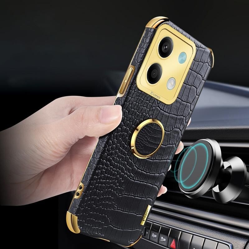 Θήκη κινητού τηλεφώνου με δερμάτινη υφή κροκόδειλου και ηλεκτρολυτική επίστρωση 6D για Xiaomi Redmi Note 13 με βάση στήριξης (Κίτρινο)