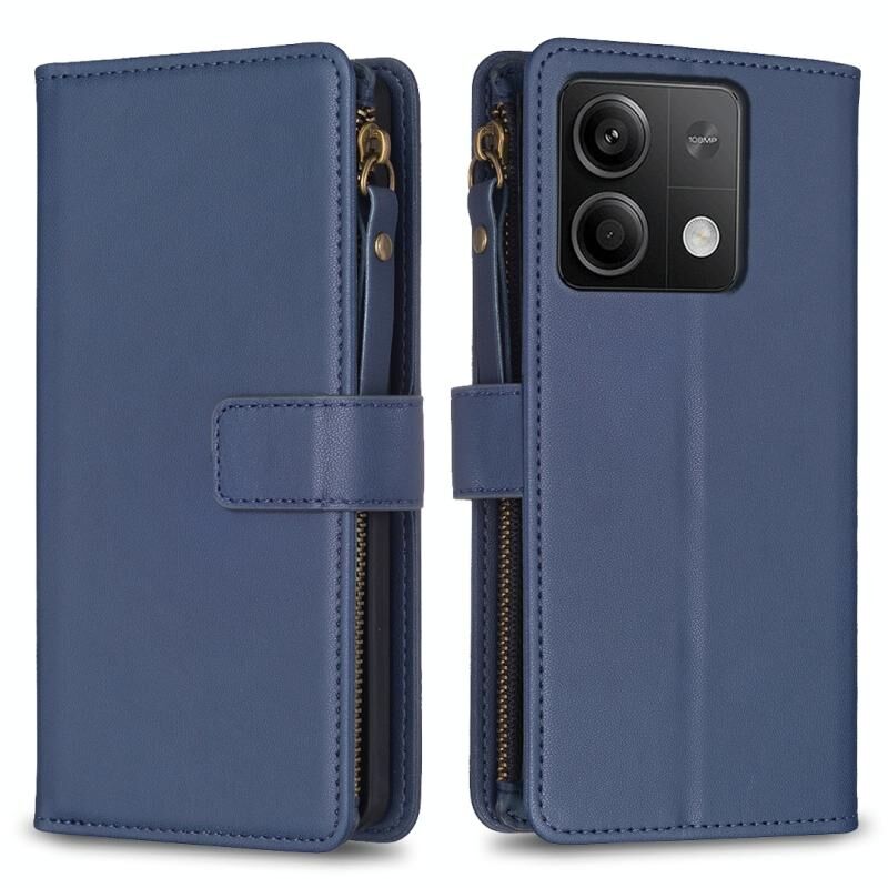 Για Xiaomi Redmi Note 13 9 Card Slots φερμουάρ πορτοφόλι δέρμα Flip υπόθεση τηλεφώνου (μπλε)