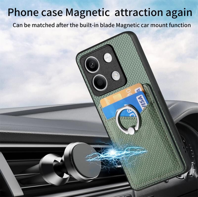 Για Xiaomi Redmi Σημείωση 13 Carbon Fiber κάρτα πορτοφόλι δαχτυλίδι κάτοχος τηλέφωνο υπόθεση (πράσινο)